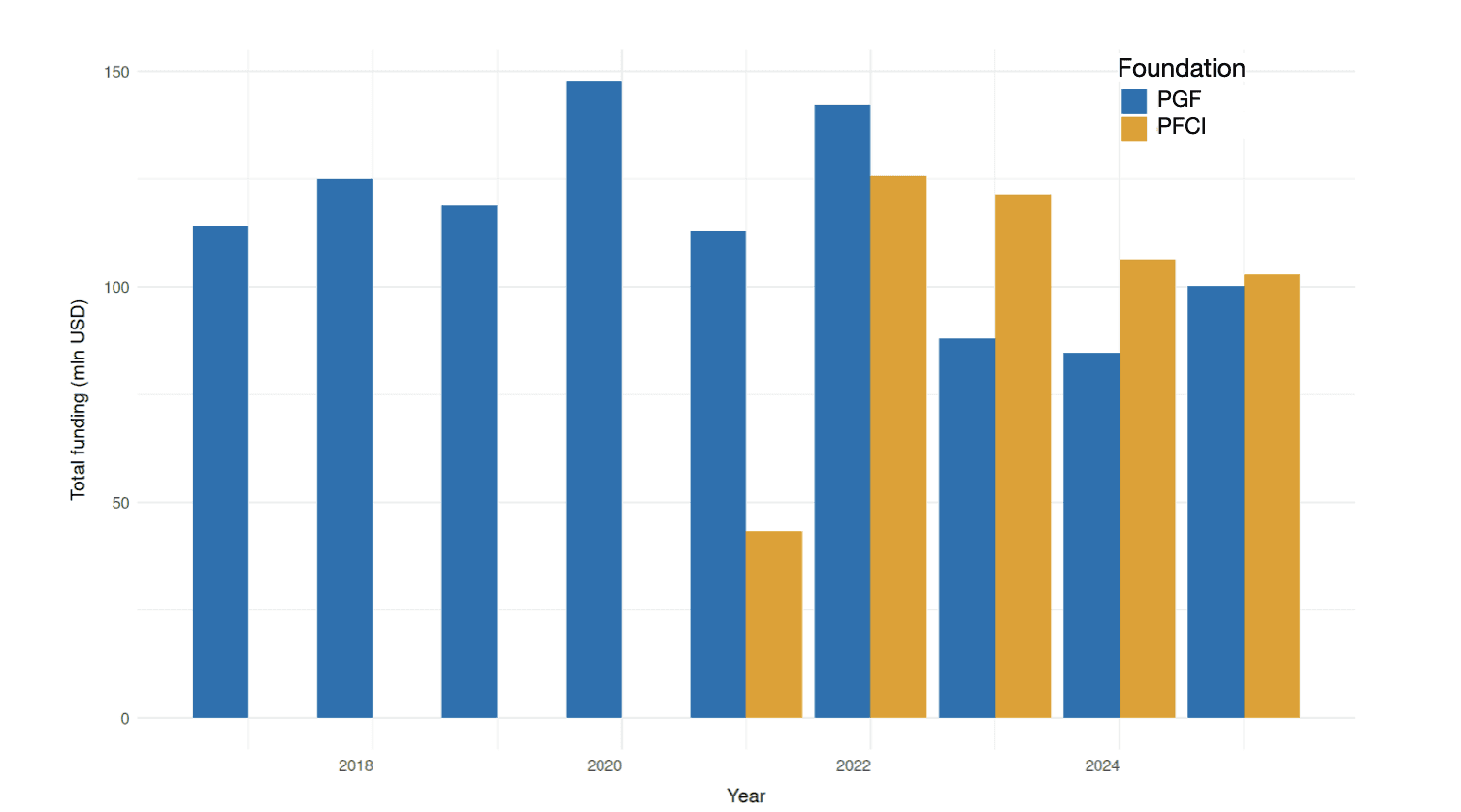 Meanwhile, the PFCI has managed to attract entirely new applicants: Only 30% of participants in PFCI competitions (11,994 of 41,338) had previously participated in competitions organized by the PGF.