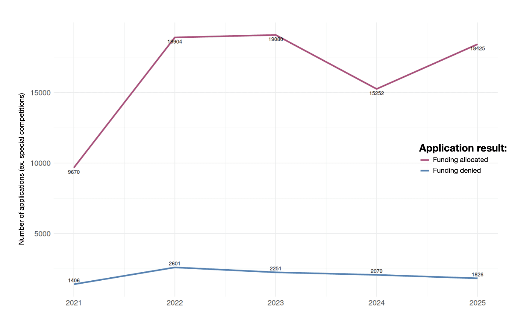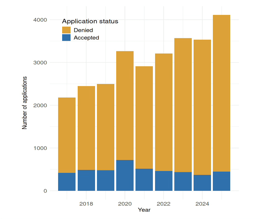 As a result, the total number of participants in competitions across both foundations has nearly doubled, while the total amount of money allocated annually has remained roughly the same. The competition has therefore intensified significantly. While the PGF maintains an average success rate of about 20%, the success rate in competitions of the PFCI is only about 10%.